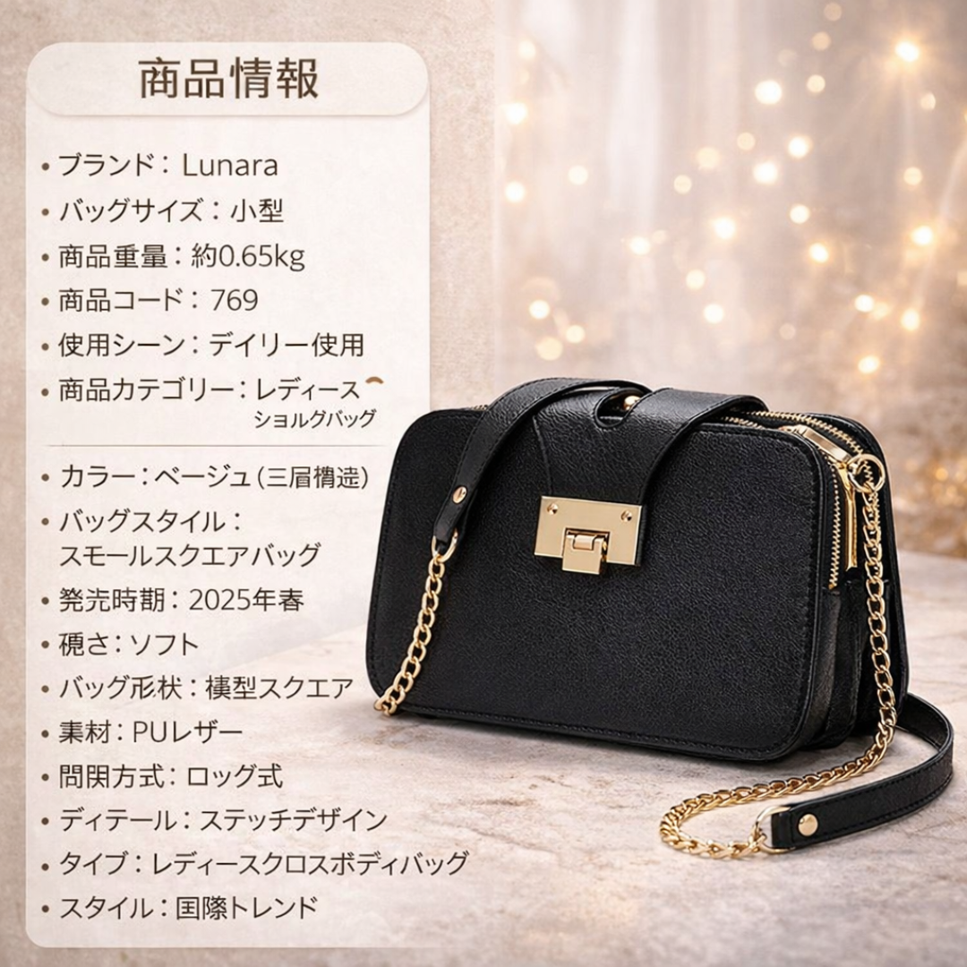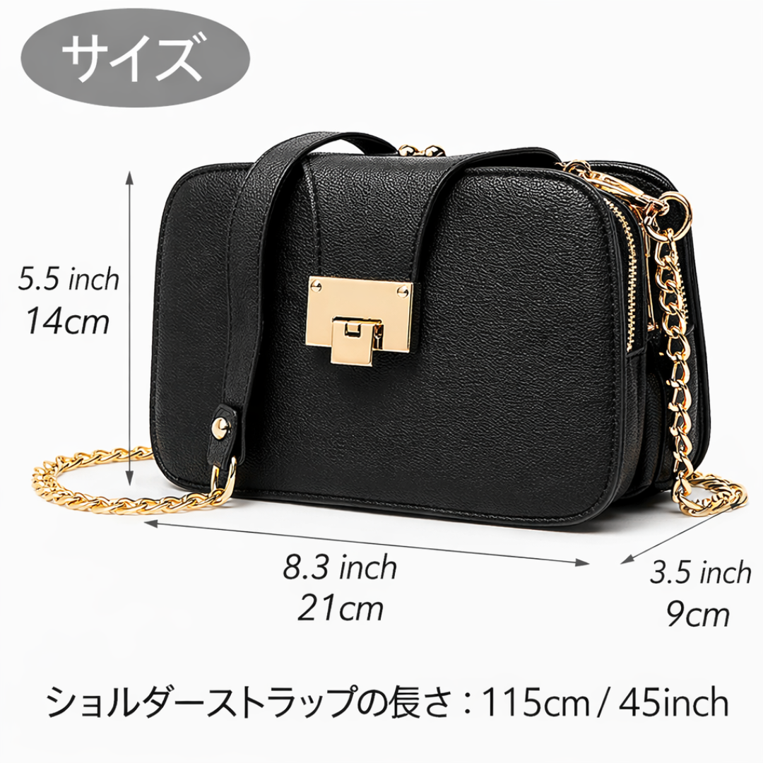 上品なチェーンデザインがさりげない高級感を演出し、デイリー使いから特別なお出かけまで幅広いシーンで活躍。
