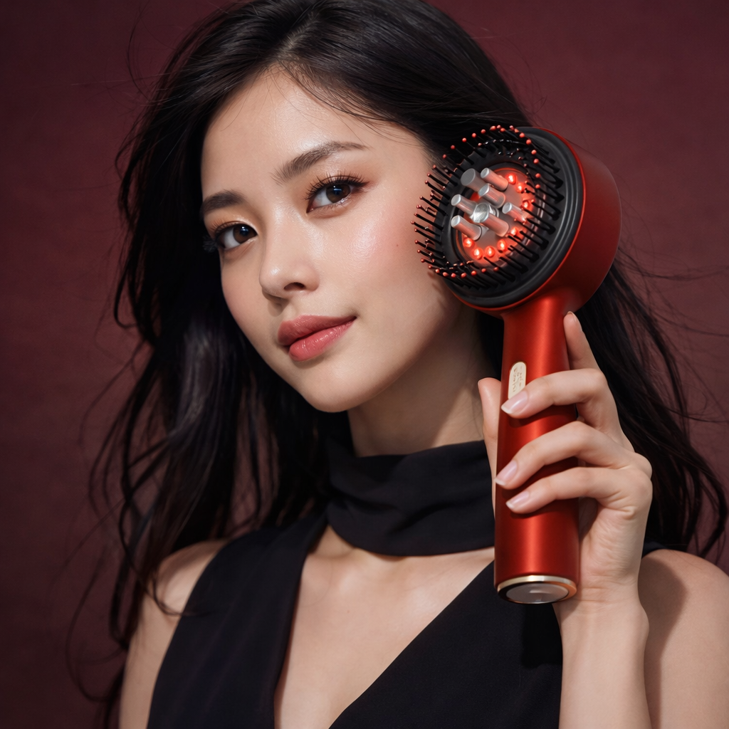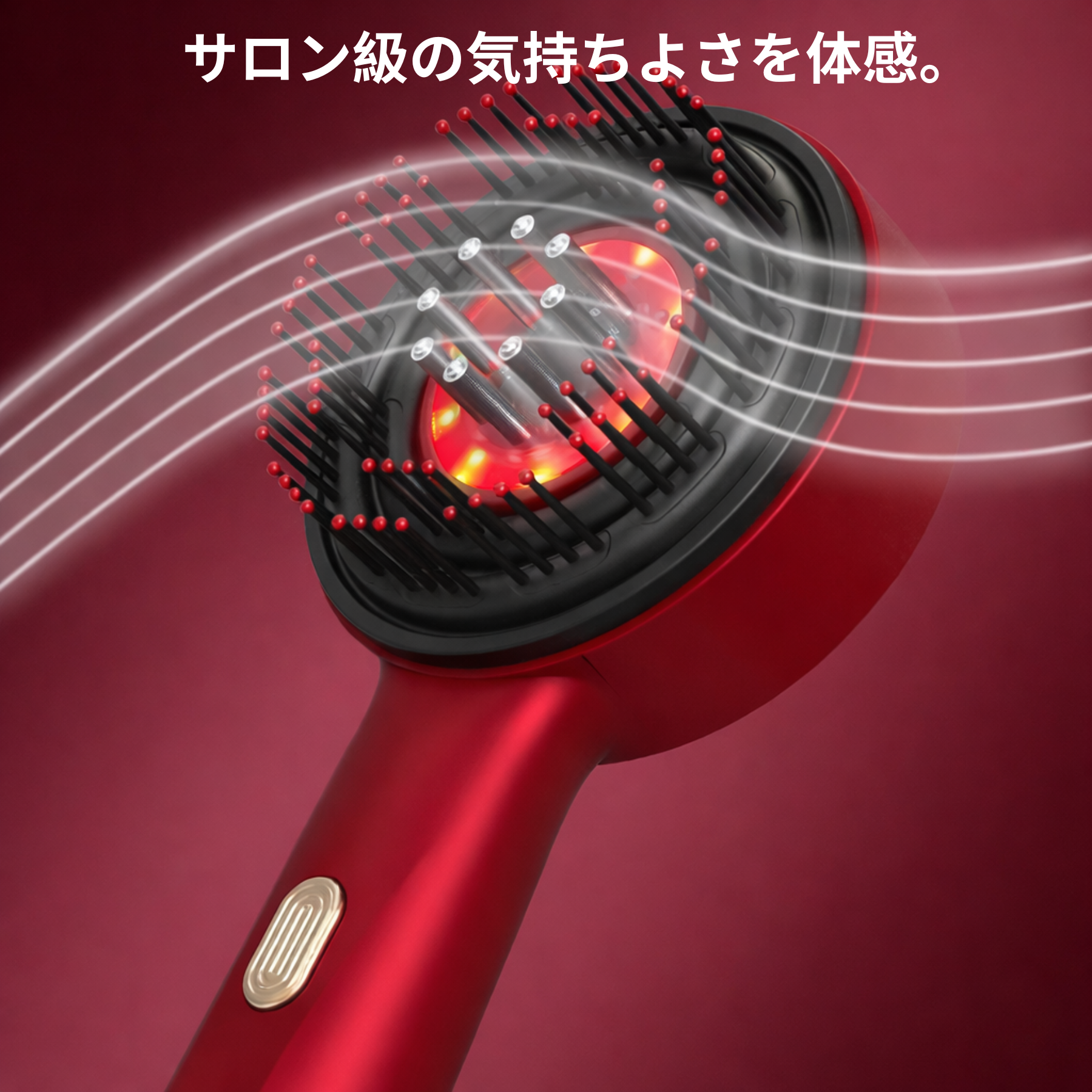 赤色LEDケアと心地よい振動マッサージで、血行を促進し、頭皮をやさしく刺激。