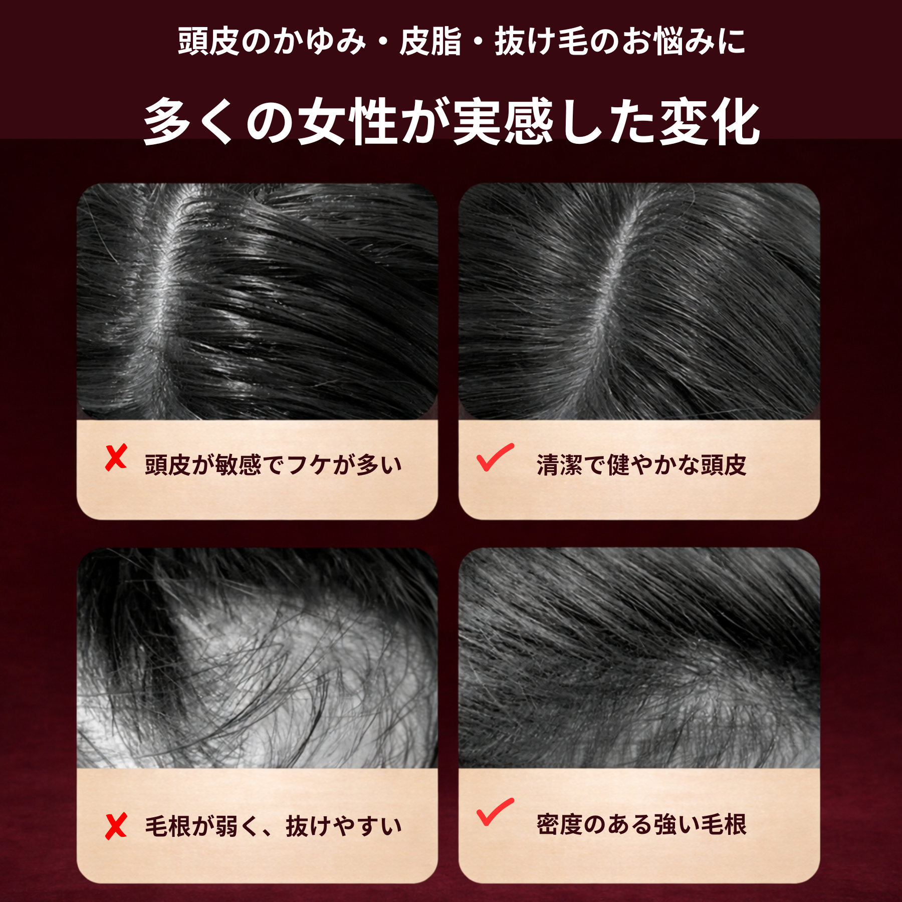 個人差はありますが、継続してご使用いただくことで、頭皮環境の改善やリフレッシュ効果を実感いただけます。